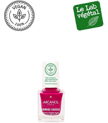 La formule du Vernis Green le Lab Végétal, composée d'ingrédients à 77% biosourcés et à 68% d'origine naturelle issus de la pomme de terre, du maïs, du blé, ou encore du manioc, allie brillance, longue tenue et respect des ongles. Sa formule 10-Free ne contient pas d'ingrédients tels que le toluène, les phtalates, le camphre, le xylène, le formaldéhyde, l'éthyl tosylamide, le triphénylphosphate, la benzophénone, le styrène et les parabènes. Le Vernis Green offre un fini ultra-brillant pour des ongles éclatants !Son pinceau large facilite l'application en épousant parfaitement la forme de l'ongle pour un résultat uniforme.100% vegan, cette formule ne contient aucun ingrédient d'origine animale.Dermatologiquement testé1% du chiffre d'affaire de ce produit est reversé par Arcancil à l'organisme 1% pour la planète au profit d'associations et de projets concrets pour protéger l'environnement ...