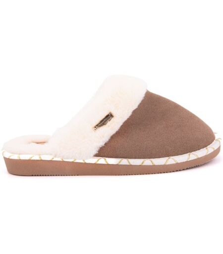 Pantoufle cisco cuir liseré doré camel Femme LES TROPEZIENNES PAR M.BELARBI