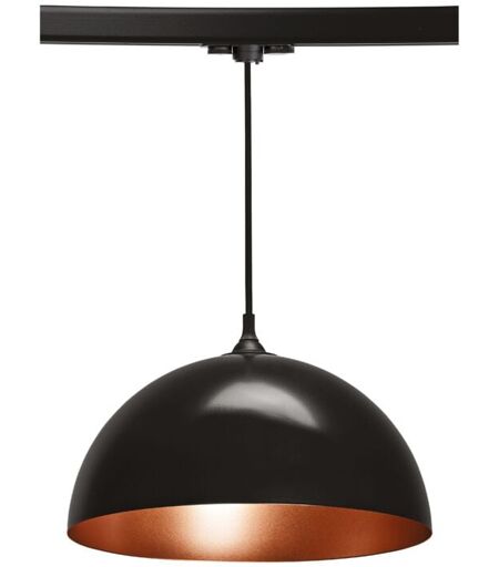 COMO 023 Suspension E27 60W, noir/cuivré, lpe non incl., pour Rail 3 allumages ARIC 4218Suspension E27 60W max Ø335mm acier noir intérieur cuivré lampe non fournie précâblée avec adaptateur 023 pour montage sur Rail 3 allumages ...