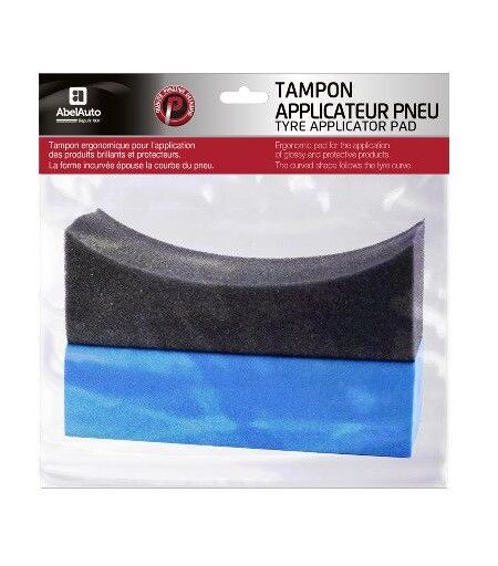 Tampon ergonomique pour l'application des produits brillants et protecteurs. La forme incurvée épouse la courbe du pneu. ...