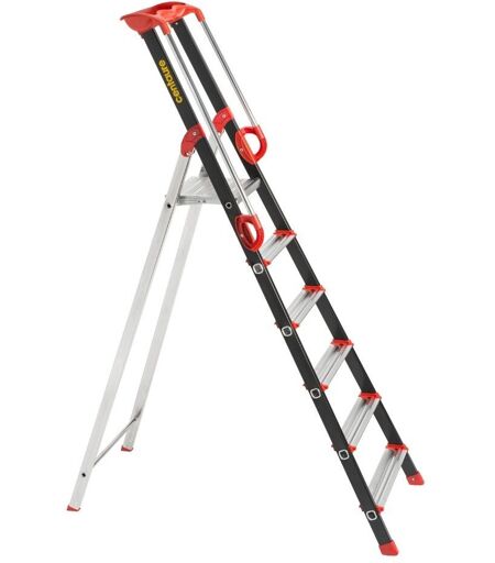 Escabeau 6 marches à marches serties, de la série "Pro'Up" de Centaure. Large tablette porte-outils, grands patins antidérapants, 2 rampes d'accès latérales. Nombre de marches: 6 Poids : 6,7 Kg Hauteur de la plateforme si l'escabeau est déployé : 1,2 m Hauteur de travail : 3,2 m Charge maximale d'utilisation : 150 Kg ...