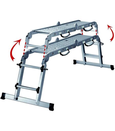 Description générale Cette échelle télescopique multifonction Solucio est un outil polyvalent qui combine quatre fonctions en une seule : échelle simple, écarteur de mur, escabeau et plate-forme. Son design en aluminium léger et ses articulations renforcées garantissent une sécurité optimale lors de son utilisation. Avec un réglage de hauteur tous les 25 cm, elle s'adapte facilement à tous vos projets de bricolage et de jardinage, que ce soit pour peindre sous plafond ou tailler des haies. Spécifications techniques Longueur en position échelle : 2,85 à 3,40 m Longueur en position écarteur de mur : 2,25 à 2,50 m Longueur en position escabeau : 1,40 à 1,65 m Hauteur en position plate-forme : 0,65 à 0,90 m Poids : 18,7 kg Charge maximale d'utilisation : 150 kg (120 kg en position plate-forme) Conforme à la norme EN 131 et au décret 96-333, label GS Garantie : 3 ans Compatibilité et accessoires Deux plate-formes en acier incluses (dimensions : 1,44 x 0,28 m) Installation Facile à ...