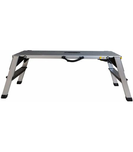 Description générale Ce marchepied Twin Step de Centaure offre une grande surface de travail et est parfait pour les travaux de rénovation. Avec ses dimensions de 120 x 42 cm et ses bandes antidérapantes, il garantit sécurité et confort. Il est conçu pour un accès à une hauteur maximale de 2,50 m, et permet l'assemblage de deux plates-formes pour élargir la surface de travail jusqu'à 234 cm. Spécifications techniques Nombre de marches : 1 Hauteur d'accès maximale : 2,50 m Hauteur de la plate-forme : 0,50 m Dimensions repliées : 1,20 x 0,17 x 0,50 m Poids : 13,50 kg Charge maximale d'utilisation : 150 kg Garantie : 2 ans Compatibilité et accessoires Possibilité d'assembler jusqu'à 2 plates-formes pour une surface de travail accrue. Poignée de transport pour un déplacement facile. Installation Assemblage rapide et sans outils des plates-formes, avec un clipsage facile pour lier les deux unités. Utilisation Idéal pour les travaux à petites hauteurs tels que le relamping, la peinture, ou ...