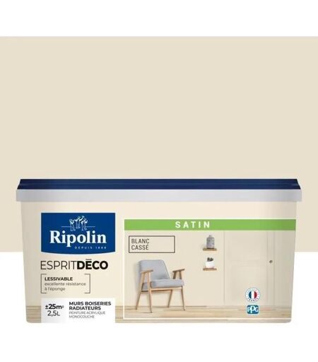 Peinture acrylique Ripolin ESPRIT DECO monocouche satin 2.5 L blanc cassé