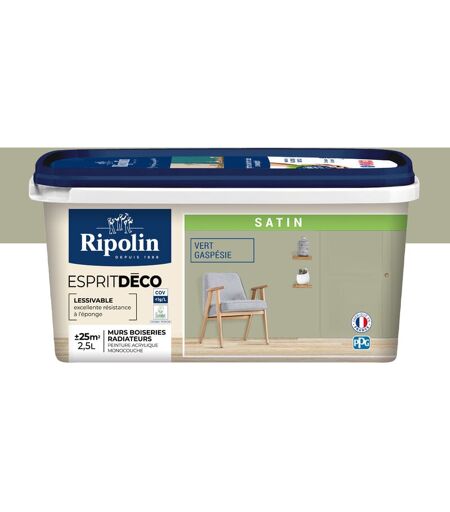 Ripolin - Peinture Murale Toutes Pièces - Satin - 2,5L - Vert Gaspésie
