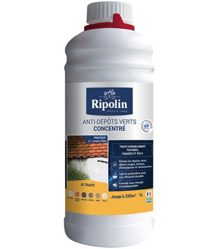 Traitement Anti-dépôts Verts -Toiture,Façade,Sols - Incolore - 1L Ripolin