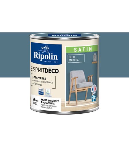 Ripolin - Peinture Murale Toutes Pièces - Satin - 0,5L - Bleu Madura