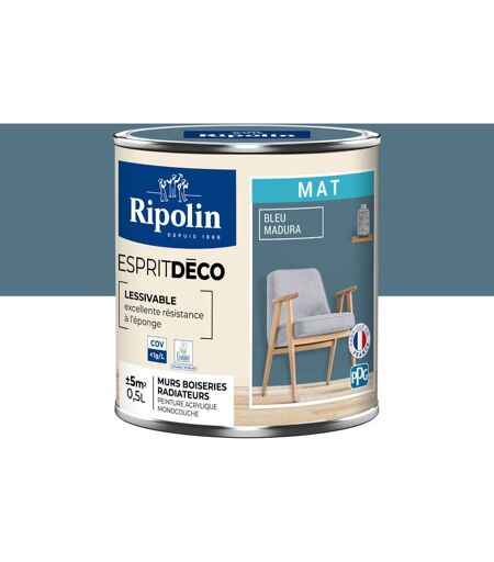 Peinture Murale Toutes Pièces - Mat - 0,5L - Bleu Madura - Ripolin