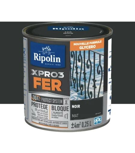 Peinture fer glycéro Ripolin XPRO3 Fer Mat Noir 0,5 l