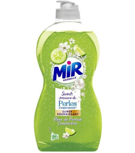 Mir Vaisselle secrets précieux de perles fleur de poirier concombre* est un liquide vaisselle facilement reconnaissable à sa couleur verte Il met en action l'efficacité reconnue de Mir, associée à l'esthétique des perles** et aux doux parfums* de fleur de poirier et concombre Sa formule est spécifiquement développée pour laver votre vaisselle avec un résultat impeccable grâce à ses puissants ingrédients dégraissants et ses traditionnelles vertus nettoyantes Mir contribue au respect... ...
