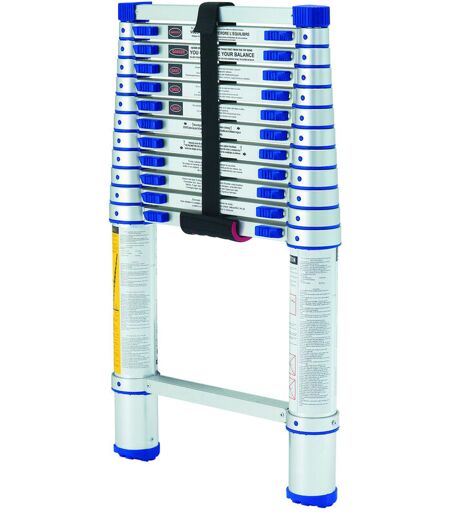 Description générale L'échelle télescopique en aluminium X-Tenso est conçue pour offrir une solution pratique et compacte pour vos travaux en hauteur. Avec un système de coulissement équipé de bagues en téflon, elle garantit une grande stabilité et évite les encrassements. Son design léger et ultra compact facilite son transport et son rangement. Spécifications techniques Hauteur déployée : 3,80 m Hauteur repliée : 0,81 m Hauteur d'accès maximale : 4,70 m Nombre d'échelons : 13 Poids : 10 kg Charge maximale : 150 kg Norme : EN 131-6 Décret : 96333 Compatibilité et accessoires Utilisation sur sol plat Housse de transport en option Installation Dépliez l'échelle et assurez-vous que les stabilisateurs se déclenchent automatiquement lorsque la dernière marche est enclenchée pour garantir une stabilité optimale. Utilisation Idéale pour les travaux de bricolage à domicile Convient pour une utilisation professionnelle Marchettes antidérapantes pour un meilleur confort et sécurité Autres ...