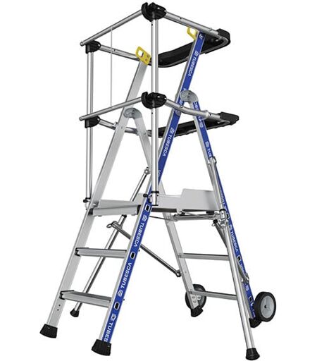 TRAVAIL EN HAUTEUR - Dans le milieu du BTP pour des travaux de second oeuvre, finitions, isolations ou plaquistes. - Plateforme individuelle roulante pour les peintres, plombiers ou menuisiers. - Poste de travail pour la maintenance ou la réparation de machines industrielles. - Rayonnage et picking dans des entrepôts logistiques. TRAVAIL SOUS PLAFOND - Escabeau petite hauteur pour un travail sous plafond inférieur à 2.50m. - Installation d'un faux plafond ou plafond suspendu. - Opérations de relamping, pose et changement de luminaire.s - Dans des parkings, logements, bâtiments tertiaires... SECURITE - Escabeau avec un garde-corps à fermeture semi-automatique. - Plateforme antidérapante en bois 0.60 x 0.40m avec plinthes. - Grandes marches antidérapantes profondeur 80mm. - Nombre de marches plateforme comprise - Stabilisateurs latéraux qui évitent tout risques de basculement. DEPLACEMENT FACILITE - 2 roues crantées Ø 175mm. - Pemret de déplacer l'escabeau comme une brouette même sur ...
