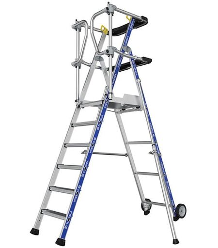 TRAVAUX EN HAUTEUR - Echelle à plateforme pour des travaux de second oeuvre, finitions, isolations ou plaquistes dans le milieu du BTP . - Plateforme individuelle roulante pour les peintres, plombiers ou menuisiers. - Poste de travail pour la maintenance ou la réparation de machines industrielles. - Travaux ou interventions en hauteur dans des escaliers : relamping ou installation d'éclairages. SECURITE - Grandes marches antidérapantes profondeur 80mm. - Nombre de marches plateforme comprise - Stabilisateurs latéraux qui évitent tout risques de basculement. PLANCHER ALUMINIUM - Plateforme antidérapante en aluminium 0.60 x 0.40m avec plinthes. - Facile à nettoyer et entretenir comparé à une plateforme en bois. PORTILLON SALOON - Escabeau avec un garde-corps portillon saloon. - Ouverture à double sens. - Travailler en toute sécurité sans risques de chutes. DEPLACEMENT FACILITE - 2 roues crantées Ø 175mm. - Déplacer l'escabeau comme une brouette même sur terrain accidenté. - 2 anneaux de ...