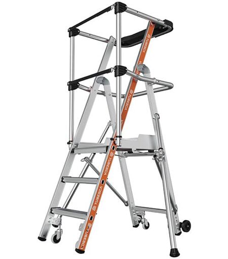 TRAVAIL EN HAUTEUR - Dans le milieu du BTP pour des travaux de second oeuvre, finitions, isolations ou plaquistes. - Travaux ou interventions en hauteur dans des escaliers : relamping ou installation d'éclairages. - Plateforme individuelle roulante pour les peintres, plombiers ou menuisiers. - Poste de travail pour la maintenance ou la réparation de machines industrielles. TRAVAIL SOUS PLAFOND - Escabeau petite hauteur pour un travail sous plafond inférieur à 2.50m. - Installation d'un faux plafond ou plafond suspendu. - Opérations de relamping, pose et changement de luminaire. - Dans des parkings, logements, bâtiments tertiaires... SECURITE - Escabeau avec un garde-corps avec sangles. - Plateforme antidérapante en bois 0.50 x 0.40m avec plinthes. - Grandes marches antidérapantes profondeur 80mm. - Nombre de marches plateforme comprise - Stabilisateurs latéraux qui évitent tout risques de basculement. 4 ROUES ESCAMOTABLES - 4 roues pivotantes Ø 100 mm. - Dès la montée de l'opérateur ...