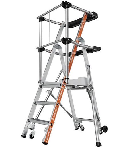 TRAVAIL EN HAUTEUR - Dans le milieu du BTP pour des travaux de second oeuvre, finitions, isolations ou plaquistes. - Travaux ou interventions en hauteur dans des escaliers : relamping ou installation d'éclairages. - Plateforme individuelle roulante pour les peintres, plombiers ou menuisiers. - Poste de travail pour la maintenance ou la réparation de machines industrielles. TRAVAIL SOUS PLAFOND - Escabeau petite hauteur pour un travail sous plafond inférieur à 2.50m. - Installation d'un faux plafond ou plafond suspendu. - Opérations de relamping, pose et changement de luminaire. - Dans des parkings, logements, bâtiments tertiaires... SECURITE - Escabeau avec un garde-corps avec sangles. - Plateforme antidérapante en bois 0.50 x 0.40m avec plinthes. - Grandes marches antidérapantes profondeur 80mm. - Nombre de marches plateforme comprise - Stabilisateurs latéraux qui évitent tout risques de basculement. 4 ROUES ESCAMOTABLES - 4 roues pivotantes Ø 100 mm. - Dès la montée de l'opérateur ...