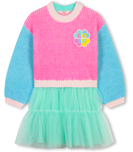 Cette robe bi-matière Billieblush égaye le vestiaire de saison. Elle est munie d'un haut en tricot avec encolure ronde, de manches et de poignets contrastés et d'un bas en tulle. BILLIEBLUSH, rose, Outlet, HIVER 2024. ...