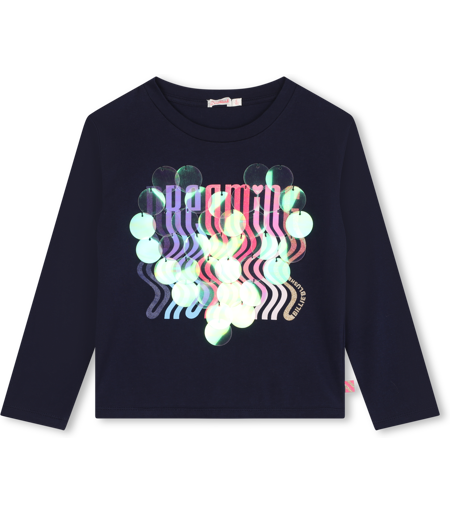 Ce T-shirt à manches longues Billieblush apporte une petite touche disco à un look quotidien. Muni d'une coupe confortable, il se caractérise par une encolure ronde et une illustration fantaisie ornée de sequins sur le devant. BILLIEBLUSH, bleu, Outlet, HIVER 2024. ...