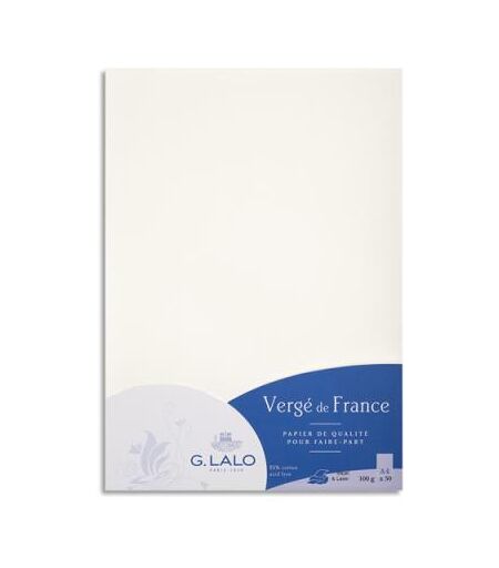 Papier Vergé de France Papier blanc vergé. Sans acide. Papier de qualité utilisé pour la correspondance, faire-parts, invitations, menus… Paquet de 50 feuilles. Format A4 (21x29,7cm). 100 g ...