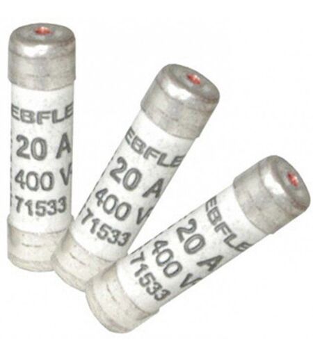 3 fusibles céramique avec voyant 8,5x31,5 mm - Intensité : 20 A - Tension : 400 V - Les fusibles a voyant permettent d'identifier tout de suite le circuit en cause ou sur lequel s'est produite une anomalie - Une petite pastille rouge se détache quand la cartouche a sauté et suspend l'alimentation du circuit. ...