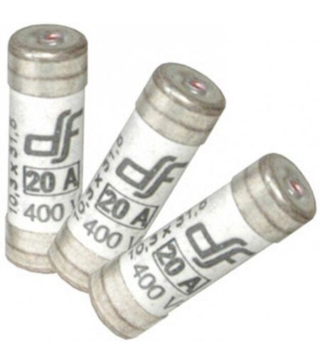 DEBFLEX Lot de 3 Fusibles 10.3x31.5 20 A - 3 fusibles céramique avec voyant 10,3x31,5 mm - Intensité : 20 A - Tension : 400 V - Les fusibles a voyant permettent d'identifier tout de suite le circuit en cause ou sur lequel s'est produite une anomalie - Une petite pastille rouge se ... ...