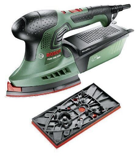 Ponceuse multifonction Bosch PSM 200 AES avec surfaces de ponçage interchangeables et système micro filtre