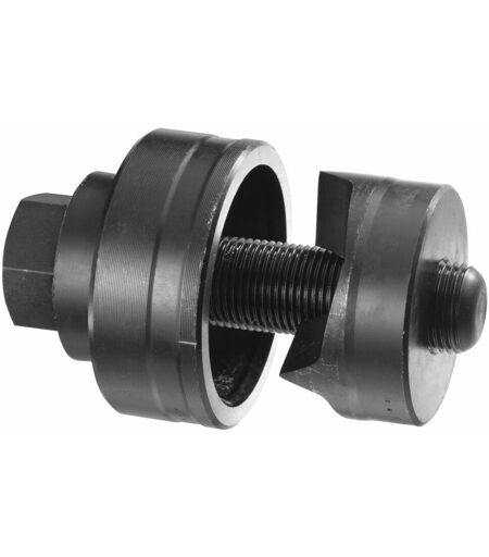 Pour découpe circulaire de tôle et matière plastique. Manoeuvre avec une clé ou un ensemble cliquet/douille. Découpe rapide, nette et sans bavure. Pour tout diamètre ISO de M12 à M63. Graissage obligatoire des pièces pour une meilleure utilisation. PLUS PRODUIT : la rondelle est fendue en trois parties et tombe automatiquement à la fin de l'opération de découpe. Fournis avec poinçon, matrice et vis à butée à bille. Légende tableau : - d = diamétre ISO/mm. - d1 = diamètre de perçage/mm. - Vis = cote sur plat (mm)/ vis de manoeuvre. - E = épaisseur/maxi acier/doux. ...