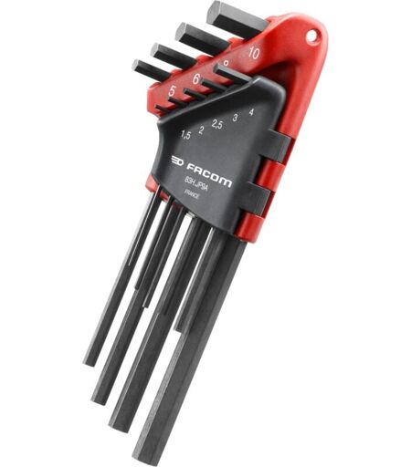 Jeu de 9 clés mâles coudées 6 pans FACOM en étui - 82H.JP9A - Les clés mâles sont présentées dans un étui compact à volet rabattable permettant une sélection rapide de la dimension souhaitée. Jeux disponibles en 4 types de clés mâles : 82H : Clés courtes. 83H : Clés longues. 83SH : Clés longues tête sphérique. 83S.L : Clés extra-longues tête sphérique. JP = jeu de clés métriques. JPU = jeu de clés en pouces. - Produit expédié depuis notre plateforme située à Rodez en Aveyron - produit conforme aux normes françaises - ...