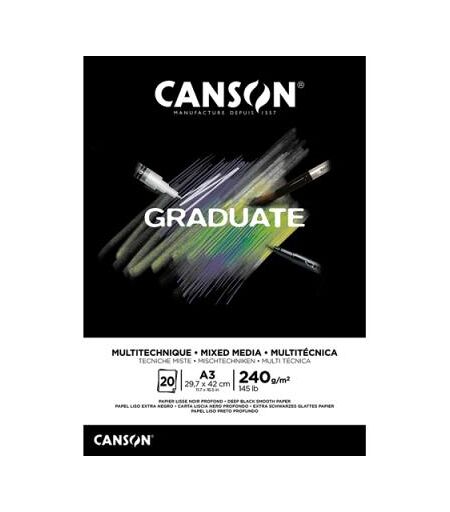 Bloc de 20 feuilles Canson GRADUATE Mixed Media - Format A3 - 240 grammes - Papier lisse noir profond - Collé