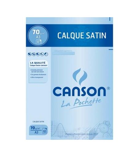 Feuilles papier calque Canson 17151 - satin - 70g - A3 - pochette de 10