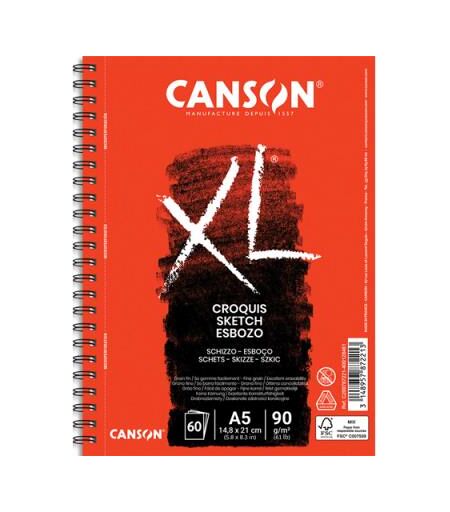 Bloc de 60 feuilles papier dessin Croquis XL Canson - spirale grand côté - 90g - A5 - album de 60 feuilles