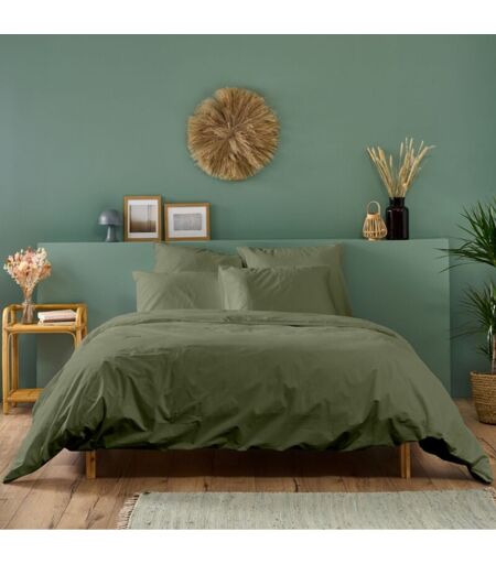 Bleu Calin - Parure de lit unie 100% Percale de coton - Kaki - 140x200cm