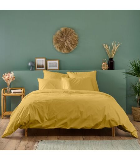 BLEU CALIN Parure de lit unie 100% Percale de coton - Moutarde - 240x260cm