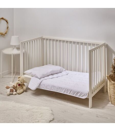 La Couette LAVABLE A 95° Bébé - Dimensions : 75x120cm adaptées aux petits lits - Garnissage 100g/m² Une couette saine et douce pour les tout petits Elle bénéficie de la technologie exclusive HYGIAFILL, mise au point pour les professionnels de la santé et de l’hôtellerie. Résistante aux lavages répétés en machine, à 95°C. COMPOSITION : Garnissage en Polyester fibre creuse siliconée. Enveloppe 100% polyester. Piquage : Ligne droite, pour maintenir le garnissage bien en place, ce qui assure une répartition de la chaleur homogène. Conseil d'entretien : Lavable en machine à 95°. Ne pas nettoyer à sec. Produit de qualité : • Fabriqué en France dans nos usines dans le Nord de la France. Ne convient pas pour des enfants de moins de 12 mois. Ne pas utiliser dans des berceaux ou des lits nacelles. Ne pas recouvrir le visage de l'enfant. Résistance thermique 3 TOG. Produit comportant au moins 70% de matières recyclées Produit totalement recyclable ...