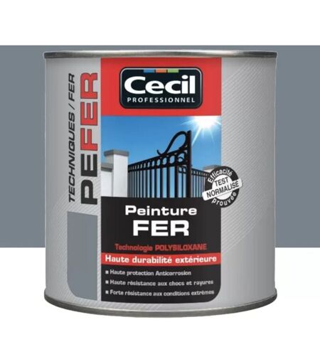 La Peinture Fer Cécil Professionnel PE FER Gris martelé est une peinture laque antirouille pour la protection et la décoration des métaux ferreux et non ferreux : portails, clôtures, garde-corps, ferronneries, mobilier de jardin, radiateurs, matériel agricole…. Cette peinture anti-rouille Cécil Professionnel PE FER contient des inhibiteurs de rouille exempts de matière toxique qui renforcent la protection anti-corrosion. ...