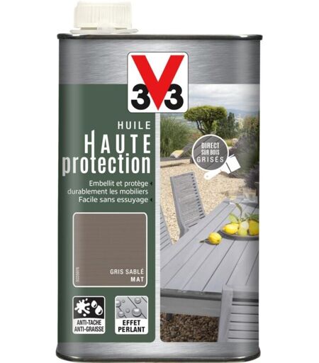 V33 - Huile bois extérieur Haute Protection Opaque Gris Sablé 1L