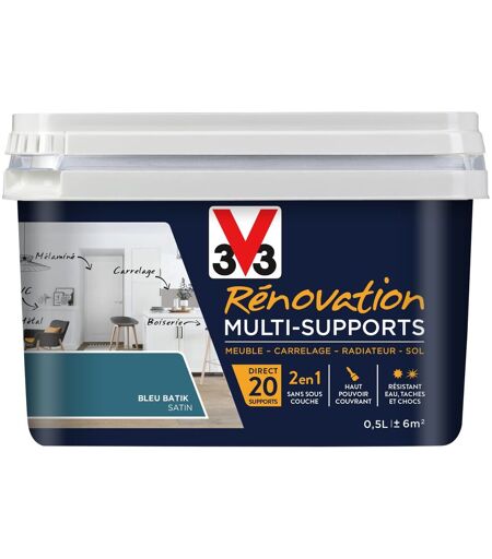 V33 Peinture Rénov multi-supports Satin Bleu batik Pot 0.5l