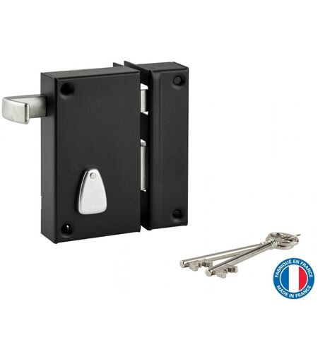 Thirard - Serrure verticale en applique 6 gorges à tirage pour entrée, droite, axe 45mm, carré 7mm, 75x130mm, noir, 2 clés