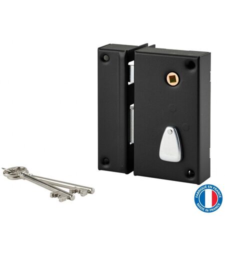 Serrure verticale en applique à clé à fouillot pour portail, gauche, axe 45mm, 75x130mm, noir, 2 clés - Thirard