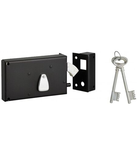 THIRARD - Serrure horizontale 4 gorges en applique à clé à crochet pour portail, droite, axe 58mm, 140x82mm, noir, 2 clés - THIRARD