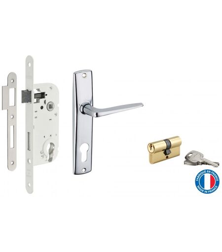 Serrure encastrable à cylindre + poignées Ares, axe 40mm, bouts carrés, cylindre 30x30mm, zingué, 3 clés - Thirard