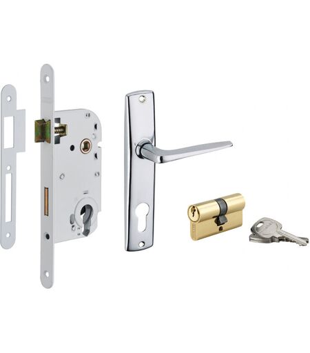 Thirard - Garniture serrure encastrable à cylindre + ensemble poignées Ares, axe 50mm, bouts ronds, 3 clés