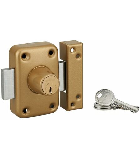 Les points Clés :Verrou cylindre double entréeVerrou Apache Epoxy OrVerrou pour porte d'entrée vitréeVerrou pour Huisserie métalliqueHauteur du coffre 90 mmLargeur du coffre 60 mmCylindre Diamètre 23 mmCylindre Longueur 45 mmCylindre Laiton à 5 goupilles3 Clés Plates crantéesNiveau de Sécurité :Descriptif détailléProtégez efficacement votre domicile avec notre gamme de verrous. Le verrou se décline dans de nombreuses versions, installation en intérieur ou en extérieur, différents formats pour s'adapter à tous vos besoins : à bouton, double entrée ou à combinaison.Le verrou Apache Thirard est un verrou de haute sécurité prévu pour une installation sur une porte d'entrée.Pour une sécurité optimale de votre porte d'entrée, nous vous conseillons un verrou de haute sécurité ainsi qu'une serrure à encastrer ou en applique ou un Verrou Multipoints.Le Verrou Apache est équipé d'un cylindre laiton a 5 goupilles avec une protection contre l'arrachement du cylindre par pilier et cavalier, ...