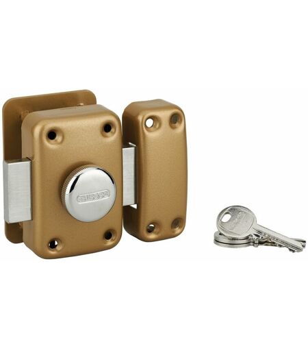 Thirard - Verrou à bouton Apache avec plaque de renfort pour porte d'entrée, cylindre 45mm, acier, 3 clés, époxy or
