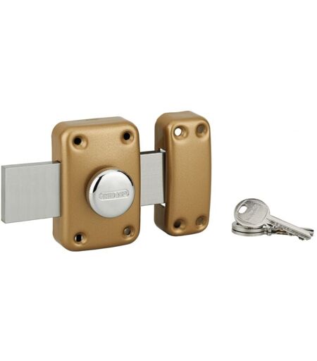 Thirard - Verrou à bouton Apache pour porte de garage, cylindre 30mm, pêne 160mm, acier, 3 clés, époxy or