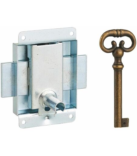 Coffre et pêne acier. Pose à droite ou à gauche. 1 clé laitonnée vieillie.- Dimension : 50mm - Usage : Meuble - Garantie : 2 ans ...