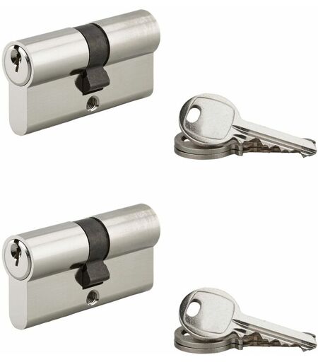 SERRURERIE DE PICARDIE Lot de 2 cylindres de serrure à double entrée, 30x30mm, s'entrouvrant, nickel, 3 clés/cylindre - SP