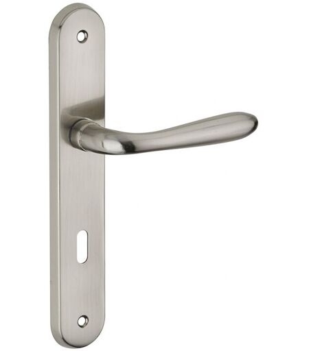 Ensemble de poignées pour porte de chambre Athena trou de clé, carré 7mm, entr'axes 195mm, nickelé brossé - Thirard