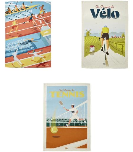 Coucke Lot de 3 torchons imprimés en coton Wim' Passion sport unisex