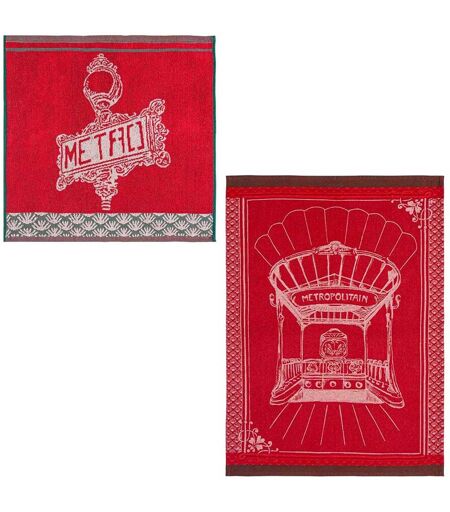 3Suisses : Equipez votre cuisine de ce Lot 1 torchon et 1 carré éponge en coton, Métro. En plus d?apporter praticité aux tâches ménagères, ils ajoutent une touche de style à la déco. Ils sont appréciés pour leur imprimé de métro parisien mis en valeur par une teinte rouge pour un effet très tendance. On aime : la douceur et la résistance du tissu. Caractéristiques : Matière : jacquard de coton Couleur : rouge Dimensions : 50x50 cm Lavable en machine à 60°C Marque: Coucke ...