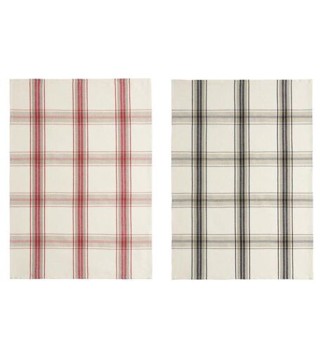 Coucke Lot de 2 torchons en métis, Made in France, BOCAGE Rouge/Noir unisex